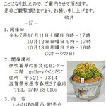 滋賀支部秋の展示・即売会が10月11日(土)~10月13日(月・祝)の3日間、「伊吹薬草の里文化センター2階galleryかくとだに」で開催されます。*入場無料